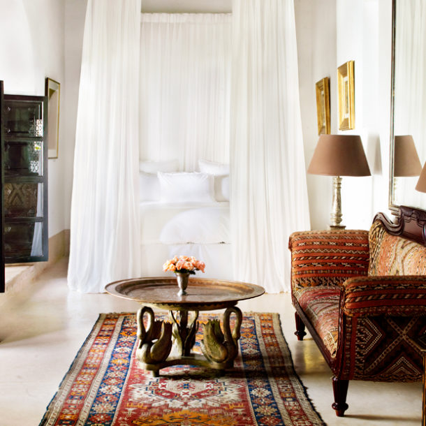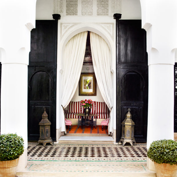 L’Hôtel Marrakech est un riad privé au cœur de la Médina de la « ville rouge ». L’Hôtel est proche de la célèbre place Jemaa El Fna, du souk animé, et de la Mosquée Koutoubia du 12e siècle. Ce riad historique du 19e siècle qui était à l’origine la partie centrale d’un palais caïdal, compte six suites spacieuses autour d’un vaste jardin intérieur et d’une piscine. Cette adresse de charme associe cuisine raffinée, grand confort et excellent service tout en recréant l’élégance des hôtels des années 1930. Le riad appartient à Jasper Conran et associe un superbe artisanat marocain à des pièces de mobilier, textiles, œuvres d’art et luminaires anciens provenant de sa collection privée qui créent une atmosphère plus proche de celle d’une demeure privée que d’un hôtel.